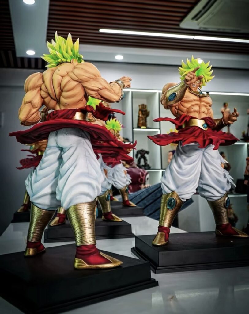 While the image displays Broly's iconic vibrant lime green hair and specific gold armor, custom Resin figures often allow for various personalization options. Collectors could inquire about altering specific paint applications, weathering effects, or minor pose variations to truly make the piece unique to their vision.