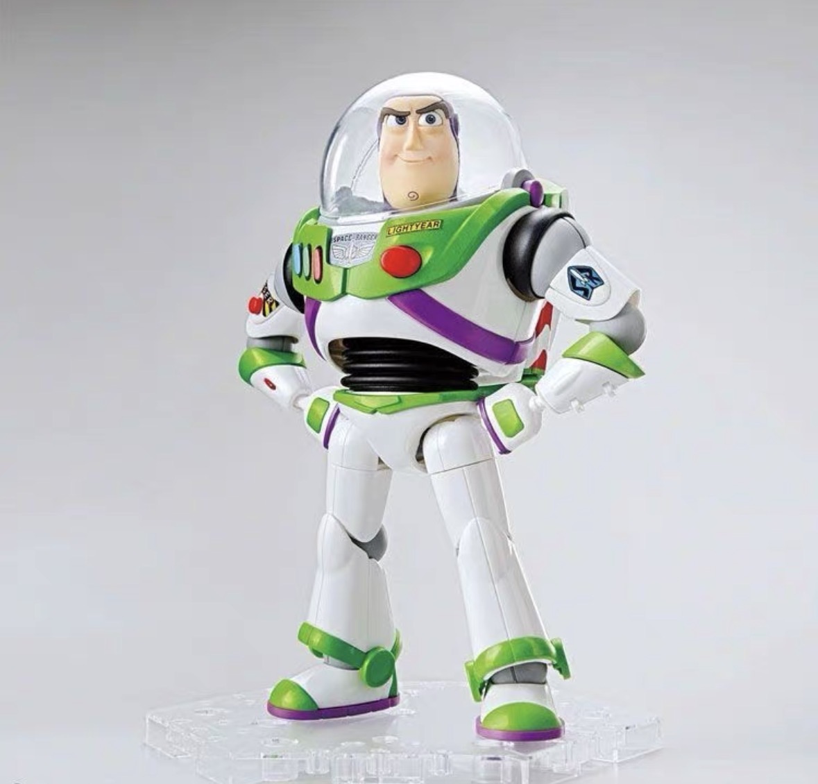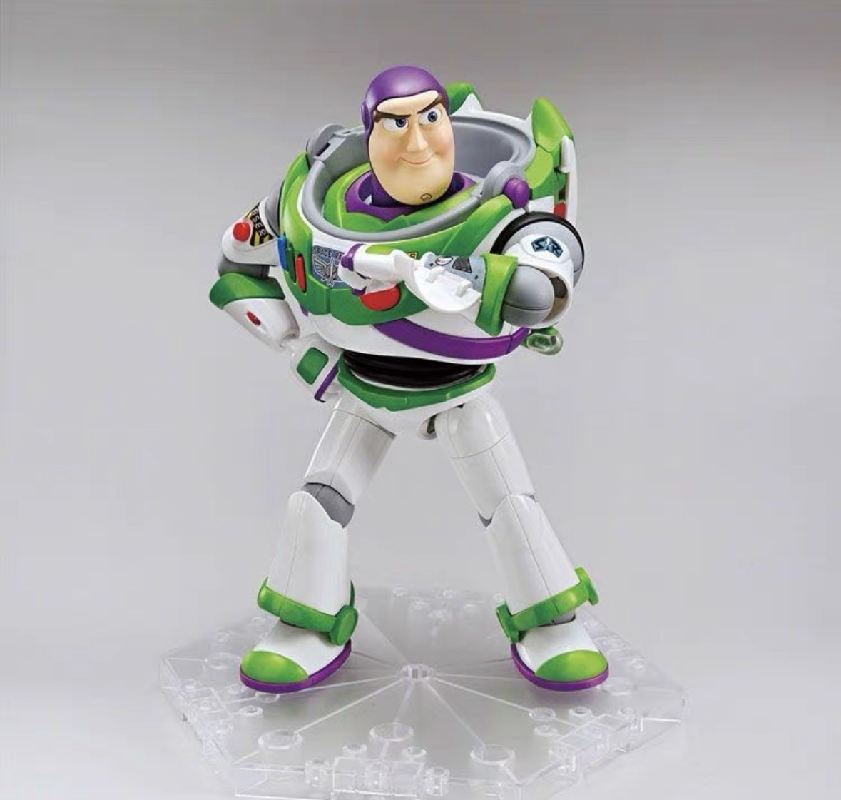 5. Is the display base included with this Buzz Lightyear figure, and what does it look like?